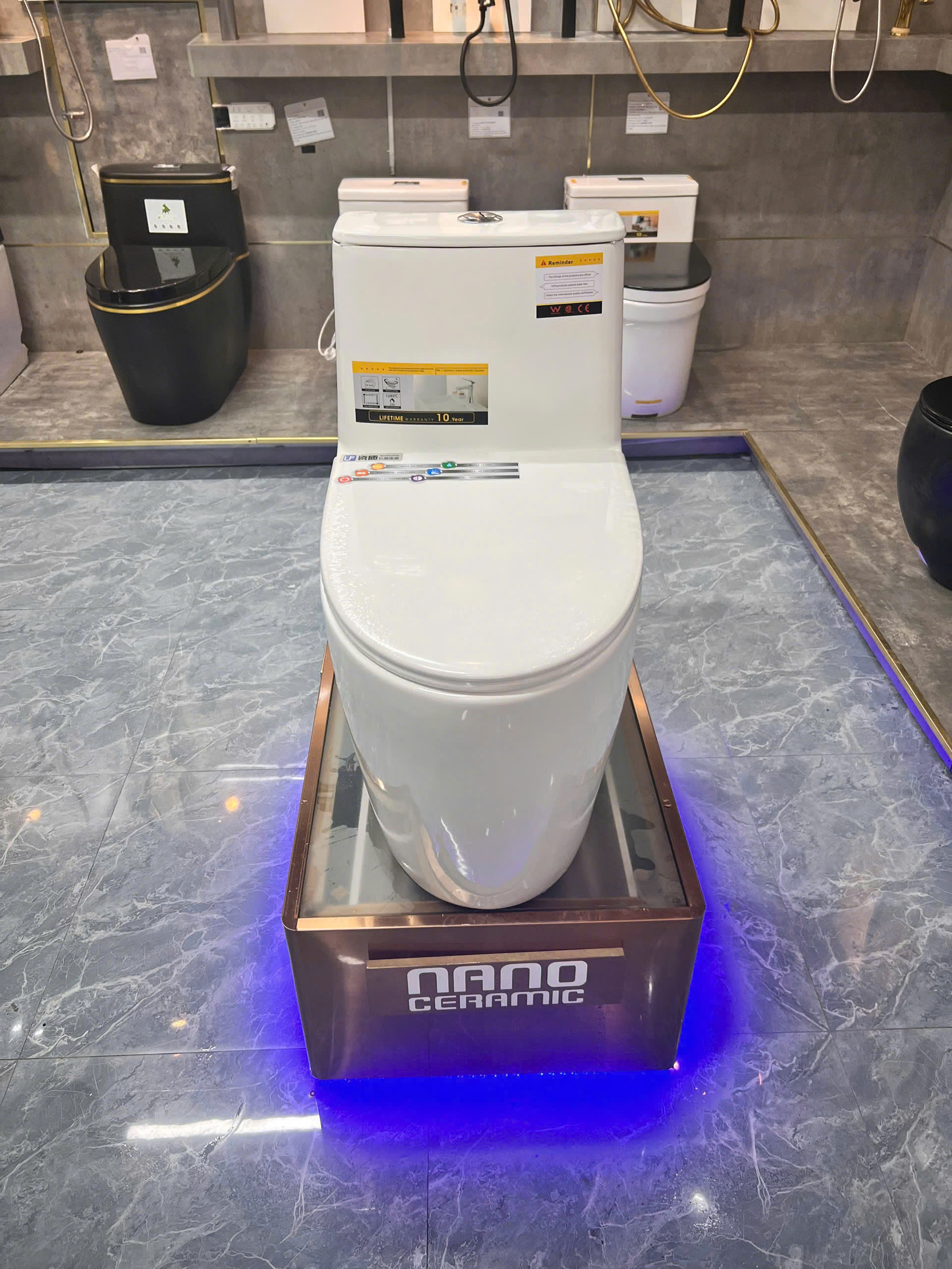 - Chất liệu: Sứ vệ sinh phủ Nanomen chống bám bẩn