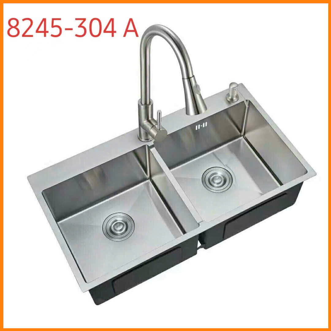 Chậu rửa bát Inox 304 2 hố 8245 Inox 304 – Tặng kèm xifon thoát nước và rổ rút