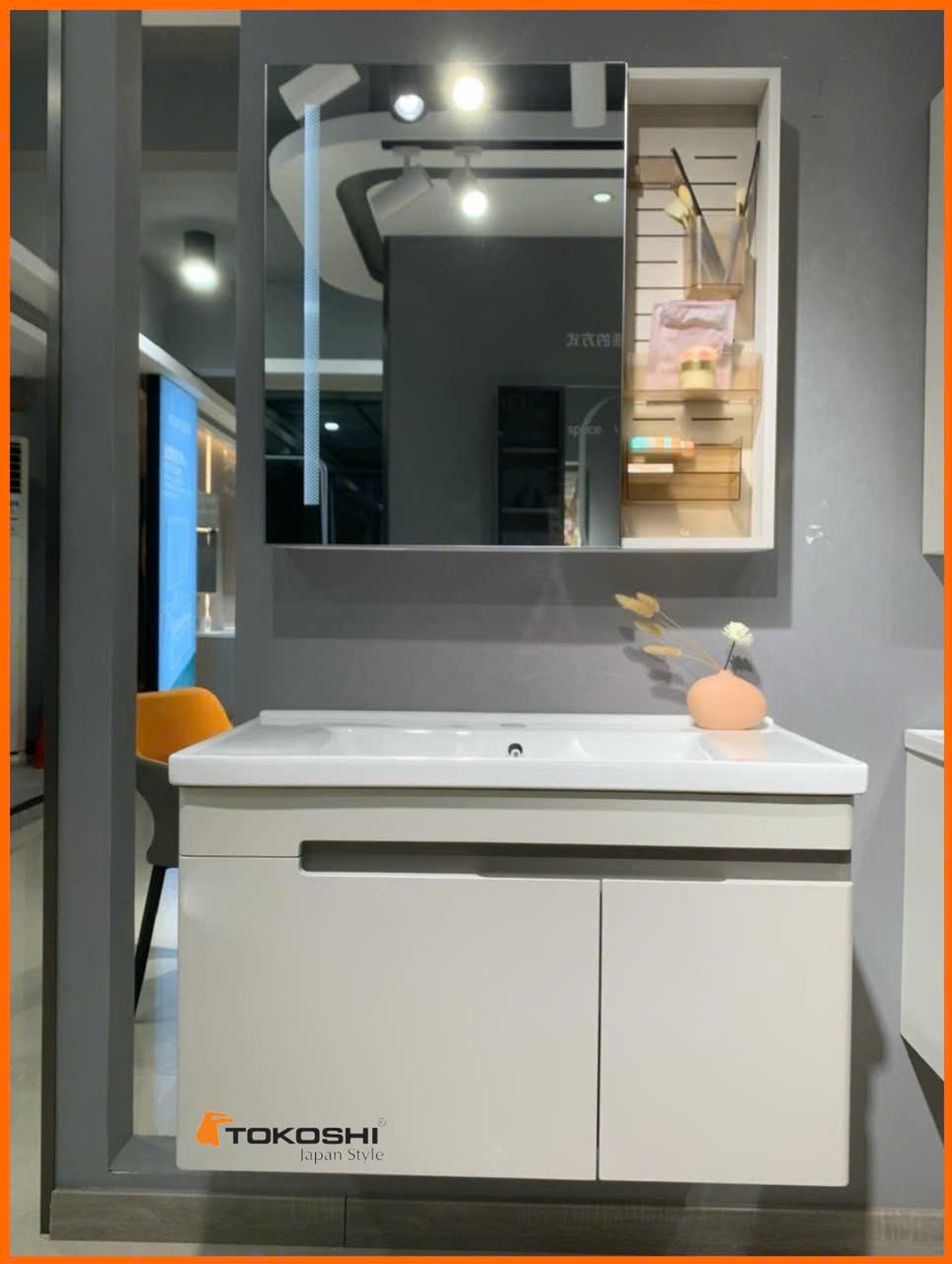 Tủ lavabo nhựa Tokoshi là sản phẩm kết hợp tinh tế giữa chất liệu nhựa PVC cao cấp chống ẩm mốc và gương LED chiếu sáng, mang lại vẻ đẹp hiện đại, đồng thời tạo sự tiện lợi tối đa cho người sử dụng.